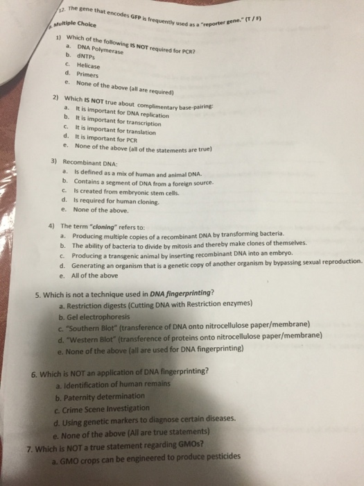Solved Which Of The Following Is Not Required For Pcr Dna Chegg Com